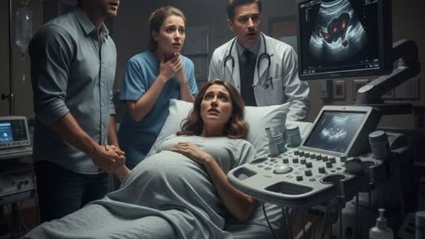 في الشهر السابع، ومع شدّة الأ.لم، ذهبوا للمستشفى بسرعة. الطبيب أجرى فحصًا عاجلًا، ثم فجأة توقف، حدّق في الشاشة وقال بصوت منخفض: