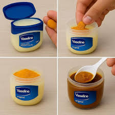 المكونات: ملعقة كبيرة من الفازلين الطبي + نصف ملعقة صغيرة من كركم التجميل (تأكدي أنه مخصص للبشرة وليس للطبخ لتجنب الصبغة القوية).